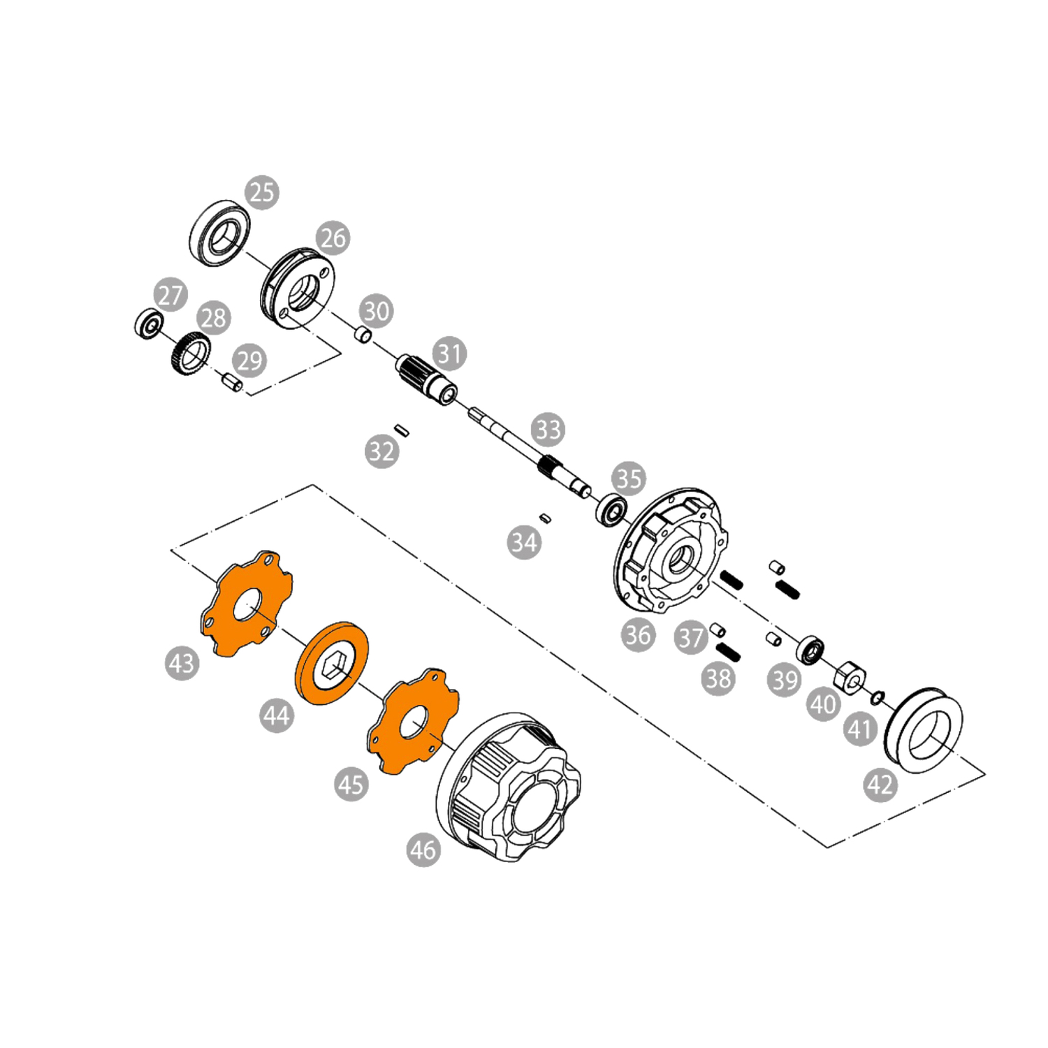Brake Set for PWK200,PWK300 & PWK380, Parts #43, 44 & 45